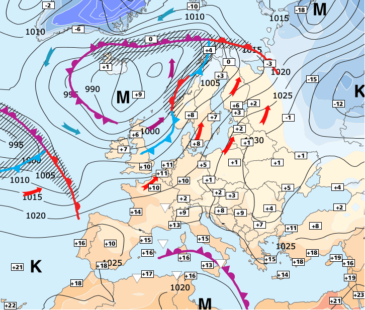 + Mais une descente froide venue du pôle Nord commencera à gagner le Nord-ouest de la France jeudi 24 et poussera les intempéries vers le Sud.