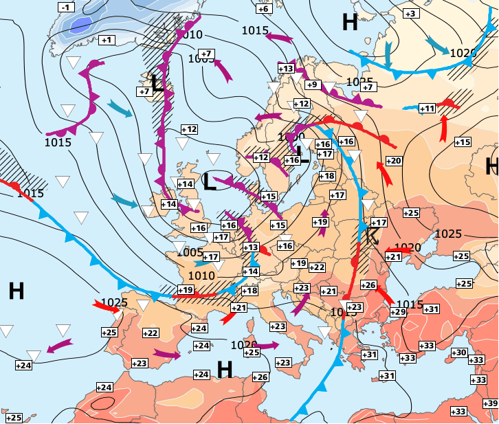 + Les régions du Nord resteront influencées par ce courant perturbé océanique (avec tout de même une hausse temporaire des températures d’ici vendredi).