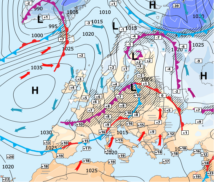 + La semaine prochaine sera extrêmement agitée, car marquée par l'omniprésence de cette vaste et profonde zone dépressionnaire qui concernera d'ailleurs presque toute l’Europe avec un froid de saison (mais absolument pas remarquable) et des précipitations très fréquentes.