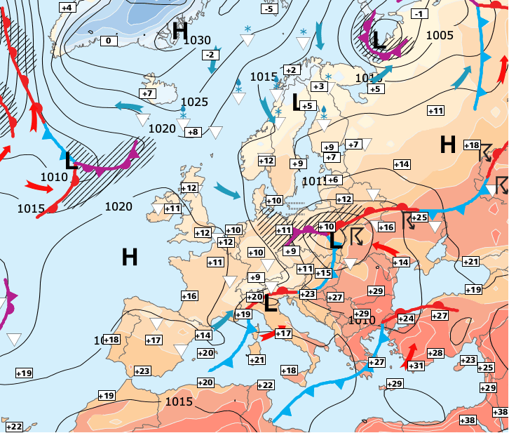 + Même si les pluies de samedi se sont décalées vers la Pologne, la France est influencée par de l’air frais venu tout droit des Spitzberg - et des records de froid ont même eu lieu dimanche matin avec des gelées parfois significatives en Bretagne !