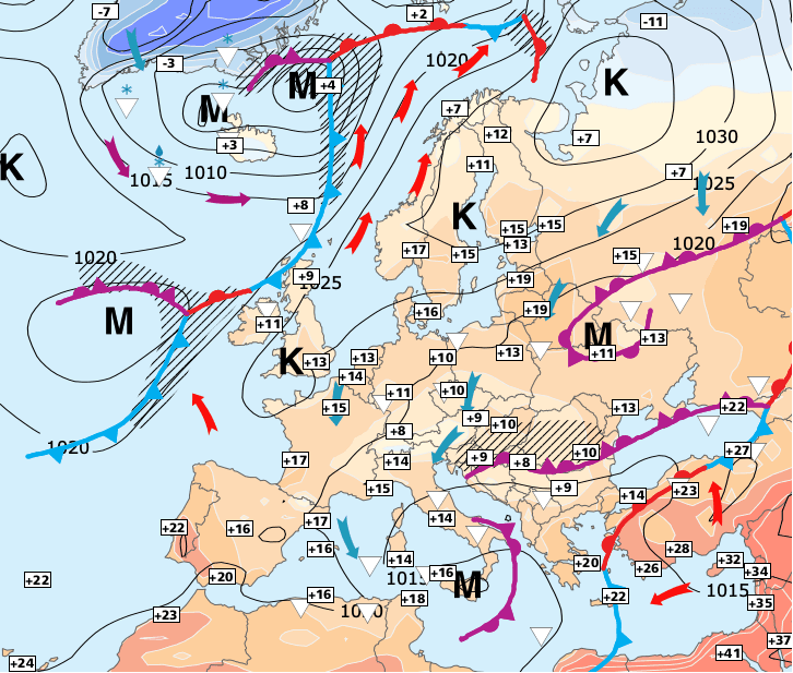 + Mais une nouvelle cellule anticyclonique positionnée sur les Iles britanniques prendra le relais et fera remonter de l’air très doux en provenance d’Espagne à partir de jeudi.