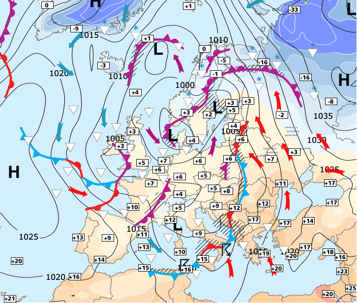 + Pour le moment, la situation reste dépressionnaire avec de l’air froid atténué par les perturbations océaniques.