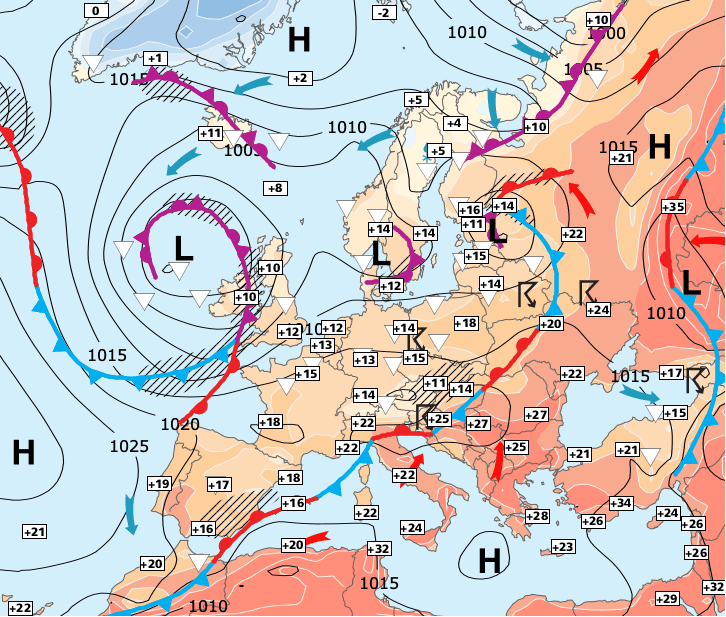 + A partir de jeudi, cette amélioration gagnera peu à peu les régions du Nord, et la fin de la semaine s’annonce estivale sur la moitié sud où les 25° devraient être dépassés.
