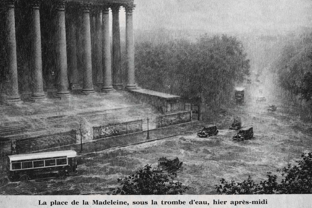 Orage du 8 août 1938 à Paris : la place de la Madeleine est inondée