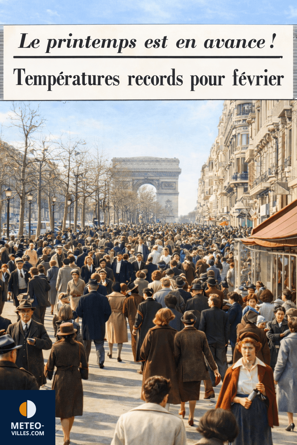 Du 27 au 29 février 1960 : De l’air chaud en provenance du Sahara envahit toute l’Europe occidentale - les températures sont dignes d’un mois de mai ou juin - on bat des records de chaleur sur presque toute la France, notamment près des Pyrénées - à la faveur d’un effet de foehn (vent qui descend de la montagne) le thermomètre atteint même 31° à St Girons (Ariège), constituant ainsi la valeur la plus élevée jamais enregistrée au cours d’un mois de février en France métropolitaine - il fait par ailleurs 29° à Biarritz (où l’on se baigne), 28° à Pau, 26° à Clermont-Ferrand, 24° à Nevers, 22° à Reims et 21° à Paris.
